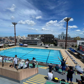 灼熱の関東大会。この日のために、みんなで暑さや外プールの対策を考えて実践してきましたがやはり厳しい環境。